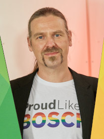 Im LGBT*IQ-Team bei Bosch organisiert er die Planungs- und Jour-Fixe-Treffen und unterstützt die Kolleg_innen bei ihren Projekten.